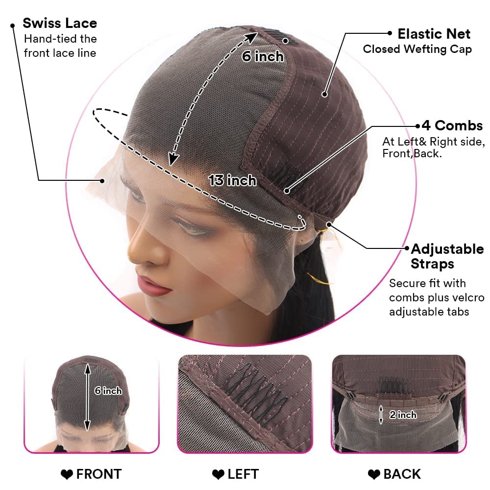 16-30 inches true to length, 22.5 inch medium cap with 4 combs and adjustable strap, perfectly combined with your head, 13x6 free part wigs pre plucked with baby hair makes the hairline more invisible soft and durable.