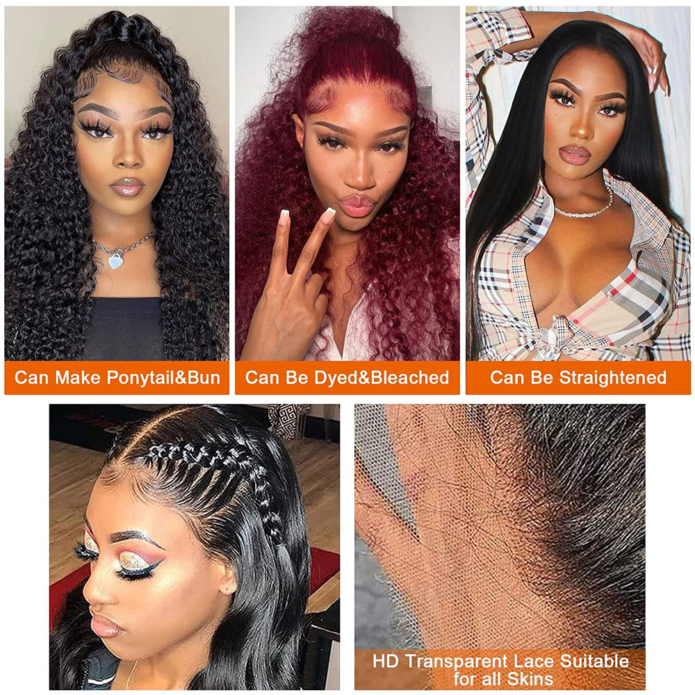 deep wave lace front wigs human hair wet and wavy hd frontal wig uses best swiss hd transparent lace suitable for all skin colors, invisible, breathable & comfortable, natural color can be dyed bleached, premed, and restyled as your like.