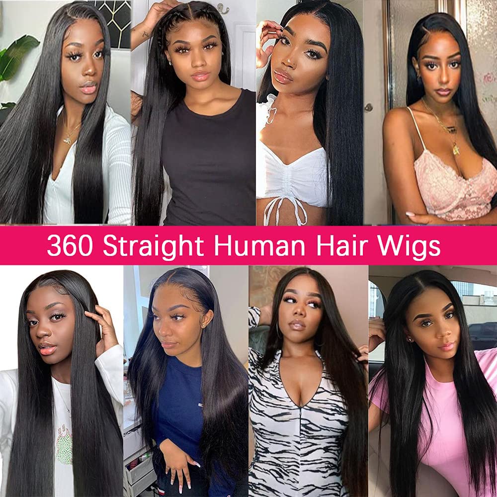 360 Lace Front Wigs Human Natural Hair, Straight, 180% Density, Pre Plucked Hairline, 16-30inch