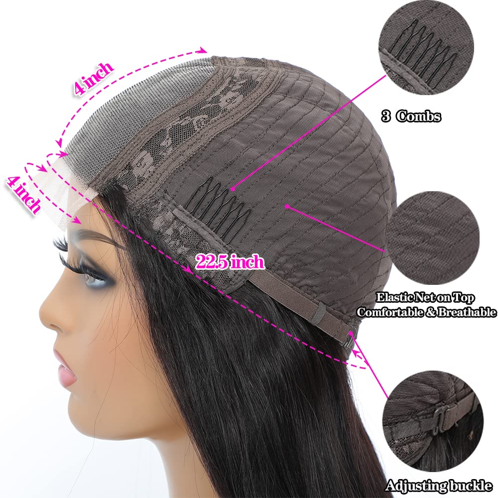 4x4 Lace Front Wigs Human Natural Hair, Straight, 180% Density, Pre Plucked Hairline, 16-30inch