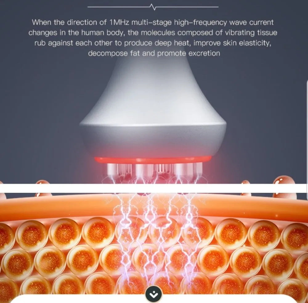 High frequency vibration explodes fat cells and introduces shaping products to make fat cells explode inward and shape the body
