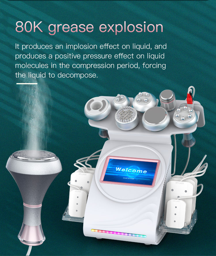 ãAdvanced 9-in-1 FunctionalityãThis 80K RF Cavitation Machine offers nine powerful treatments, including EMS Microcurrent Pad, RF, ultrasonic cavitation, and laser lipolysis, designed for comprehensive body slimming and skin tightening. Ideal for professional SPA and salon use.