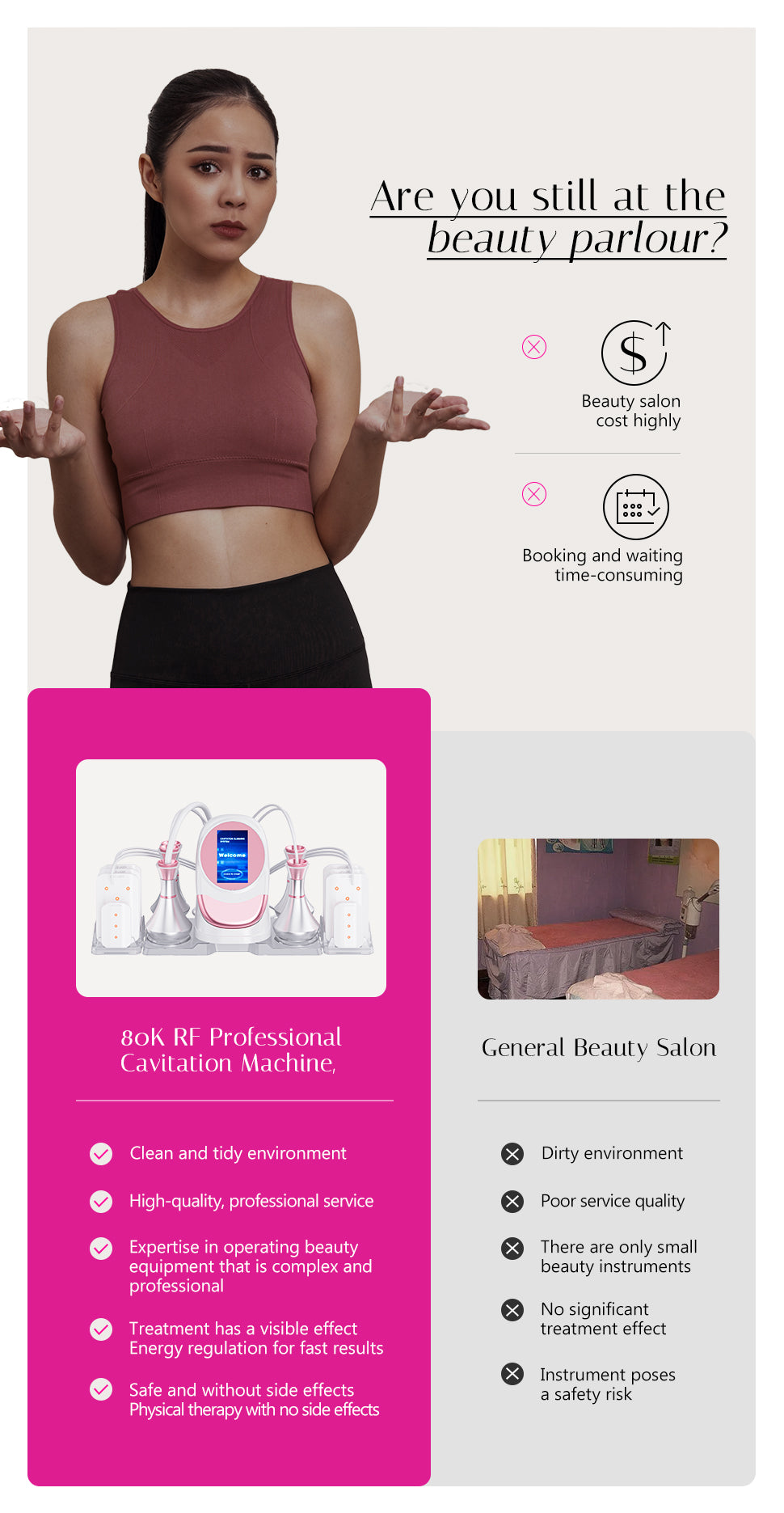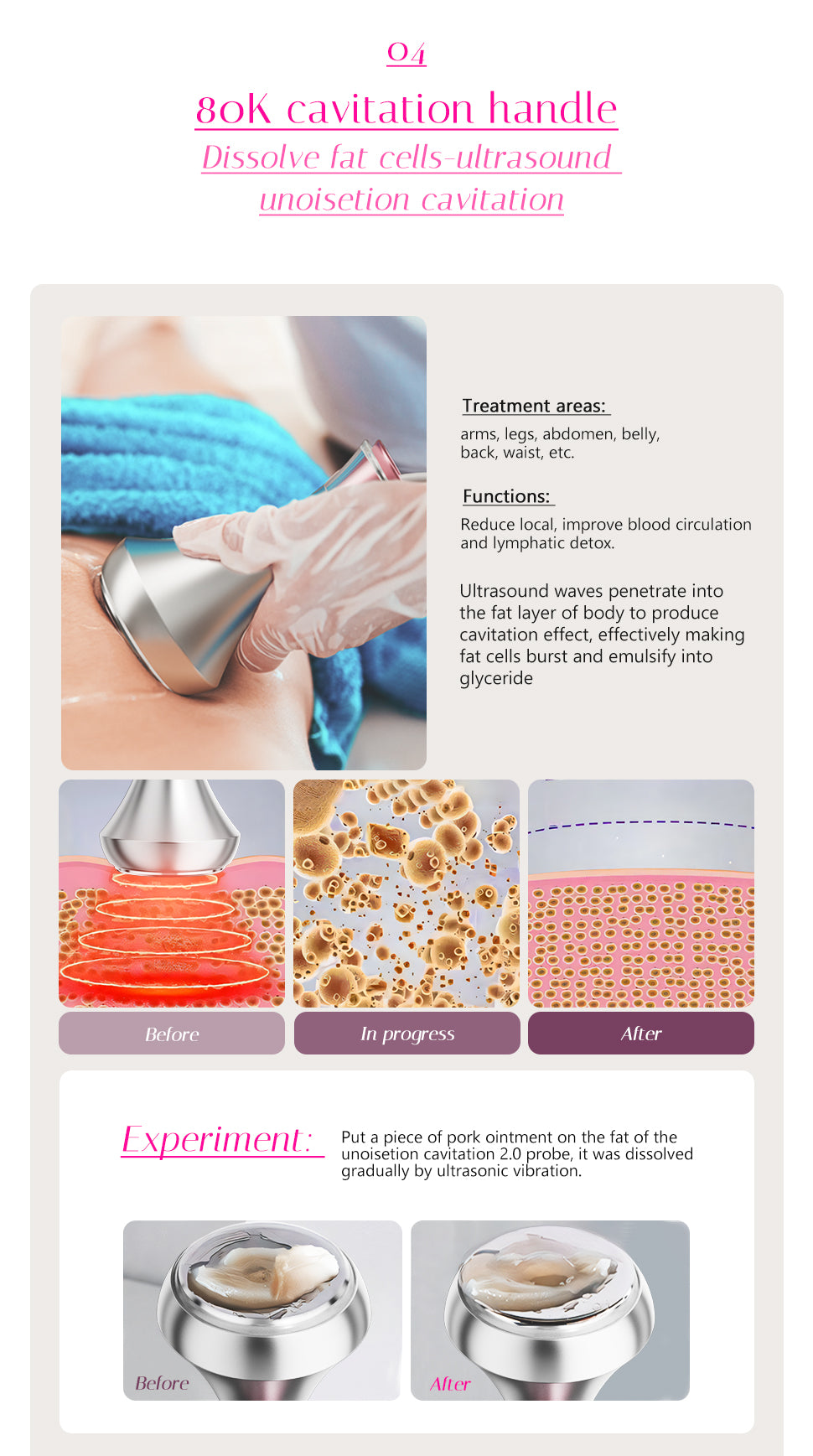 【80KHz Ultrasonic probe】Ultrasonic cavitation 80k cellulite slimming machine can break up fat cells instantly and powerfully, Powerful explosive fat, crack fatty cells, deliquescent adipose, reduce the amount of fat cells.The effect is good compared to 40K.
