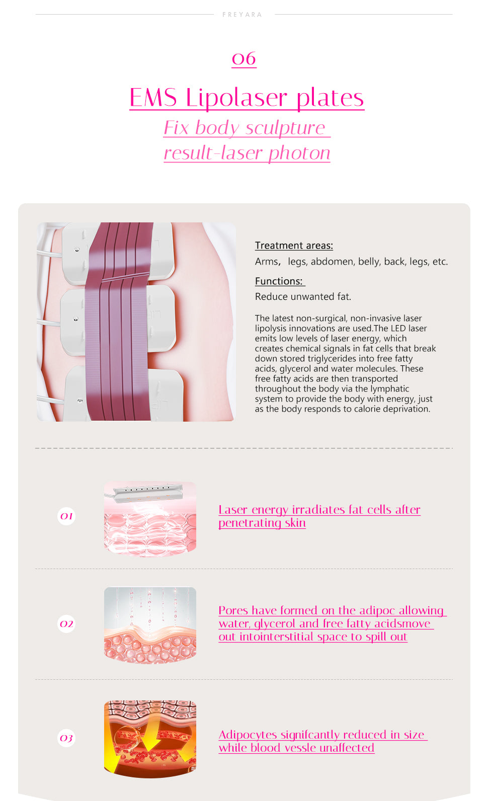 【Multi-polar Body RF probe】Further dissolve fat,Help to expel the redundant fat and toxin out of body through sweat gland and hepato-enteric circulation.