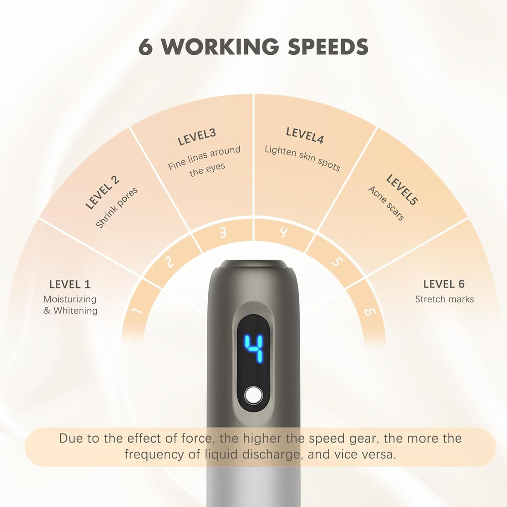 3-Level Liquid Output Adjustment: Adjust the liquid output to match essence consistencies. Choose from three customized levels and control speed gear for optimal results.