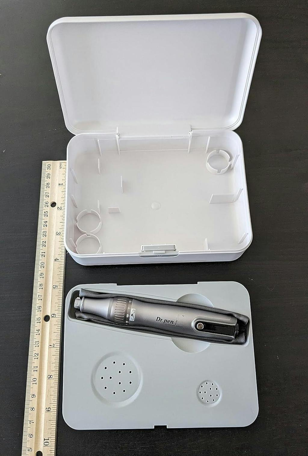 I originally used a microneedle stamp, but I decided to try an electric one and bought this one. I find it more effective because I can adjust the vibration speed and the length of the needle. Personally, I find the 18 needle one a little painful, but with the others I don't feel much. The size of the box is much smaller than I expected, which makes it easier to store.