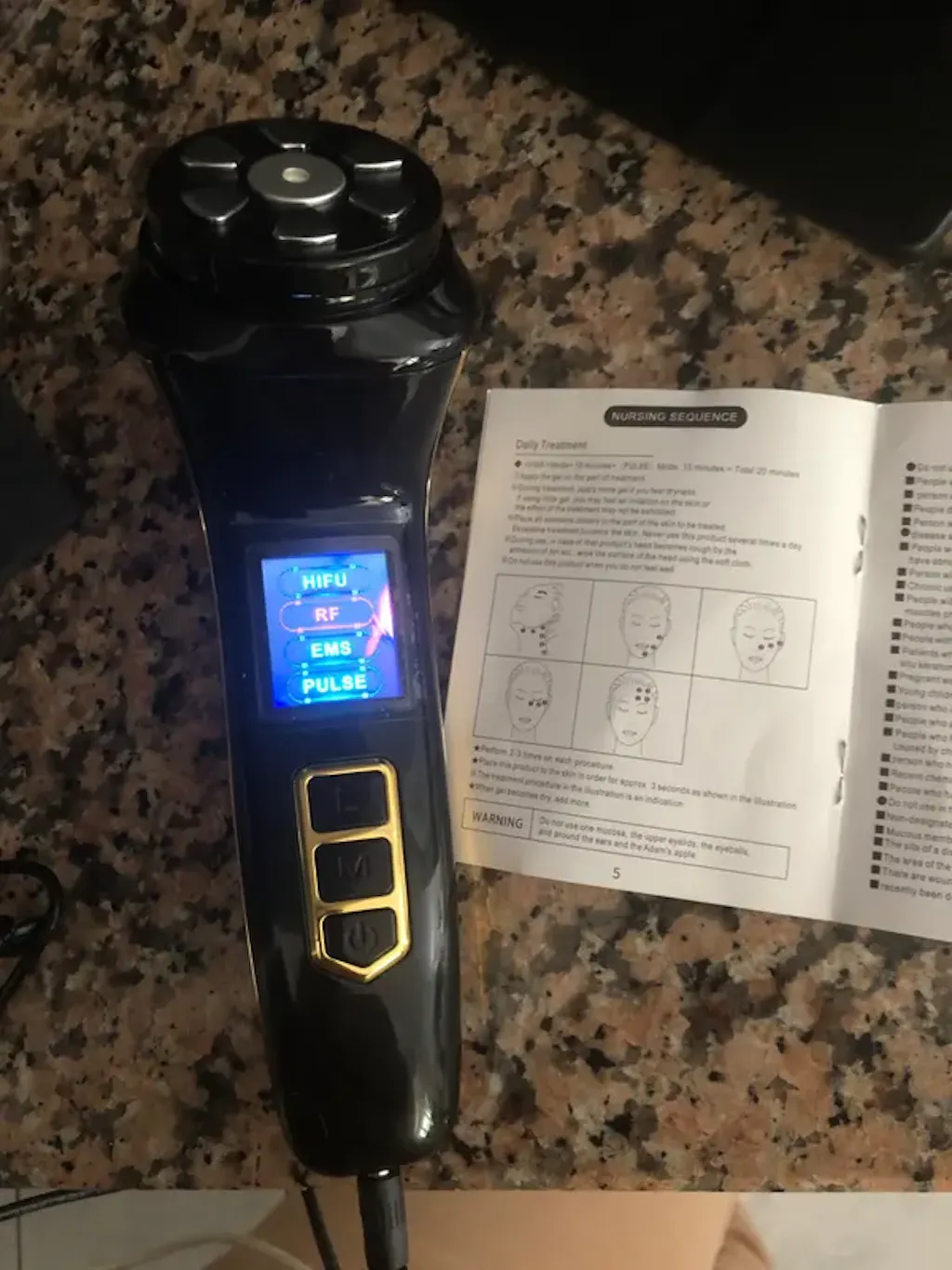 Quality product, tested many times, the skin is soft. I use HIFU and RF mode once a week, and EMS mode and pulses every day. I am using it and we will see the results.