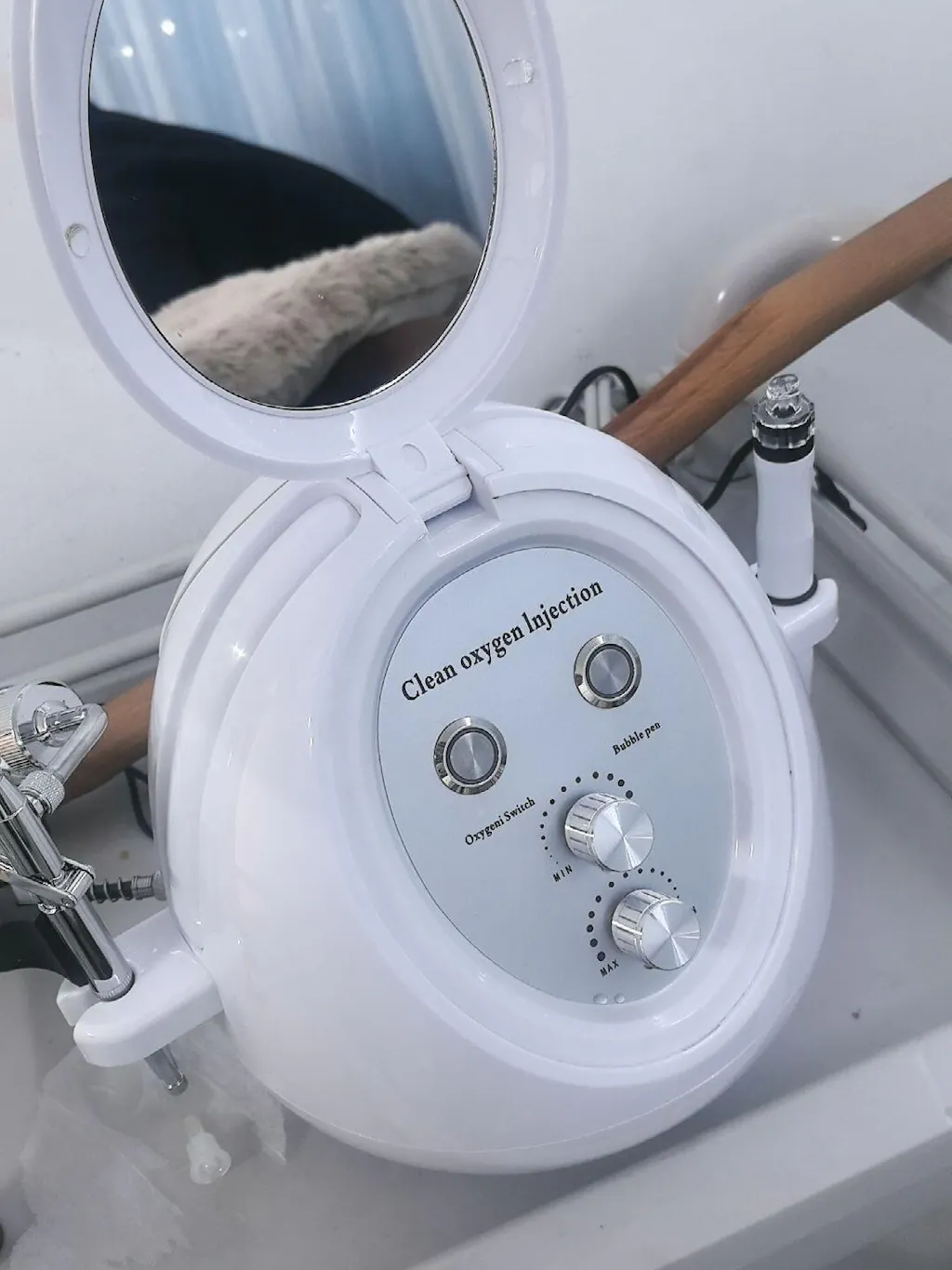 Oxygen lnjection Device:Add essence water into the pot (liquid is required, thick products need to be diluted with purified water). Watery products are best. Spray 3-5 cm away from the face. Spray toner or essence water on the facial skin to replenish moisture for the skin and make it more hydrated and smooth.