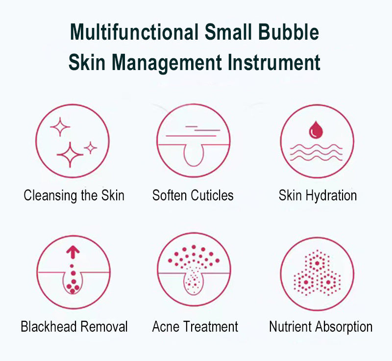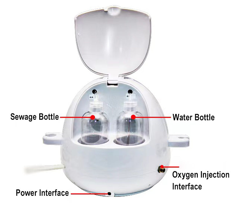 Bubble Pen: Remove blackheads, cleanse skin, and improve oily skin. (The back of the instrument has a clean water bottle and a waste water bottle. The clean water bottle can be filled with purified water or a micro-bubble solution. The waste water bottle does not need to be filled with water. The waste water bottle is used to recycle the used water. If the water is full, it should be poured out immediately to prevent it from overflowing into the instrument. The front of the instrument has suction and water flow adjustment.)