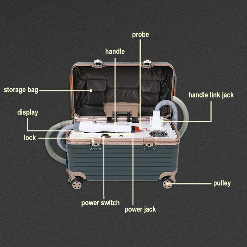 【All-in-One Portability with Wheeled Travel Case】The sleek, lightweight wheeled trolley design makes transportation effortless,perfect for mobile beauty professionals, clinics, or home users. Move it seamlessly between rooms or take it on-the-go without hassle. No heavy lifting, just smooth mobility.