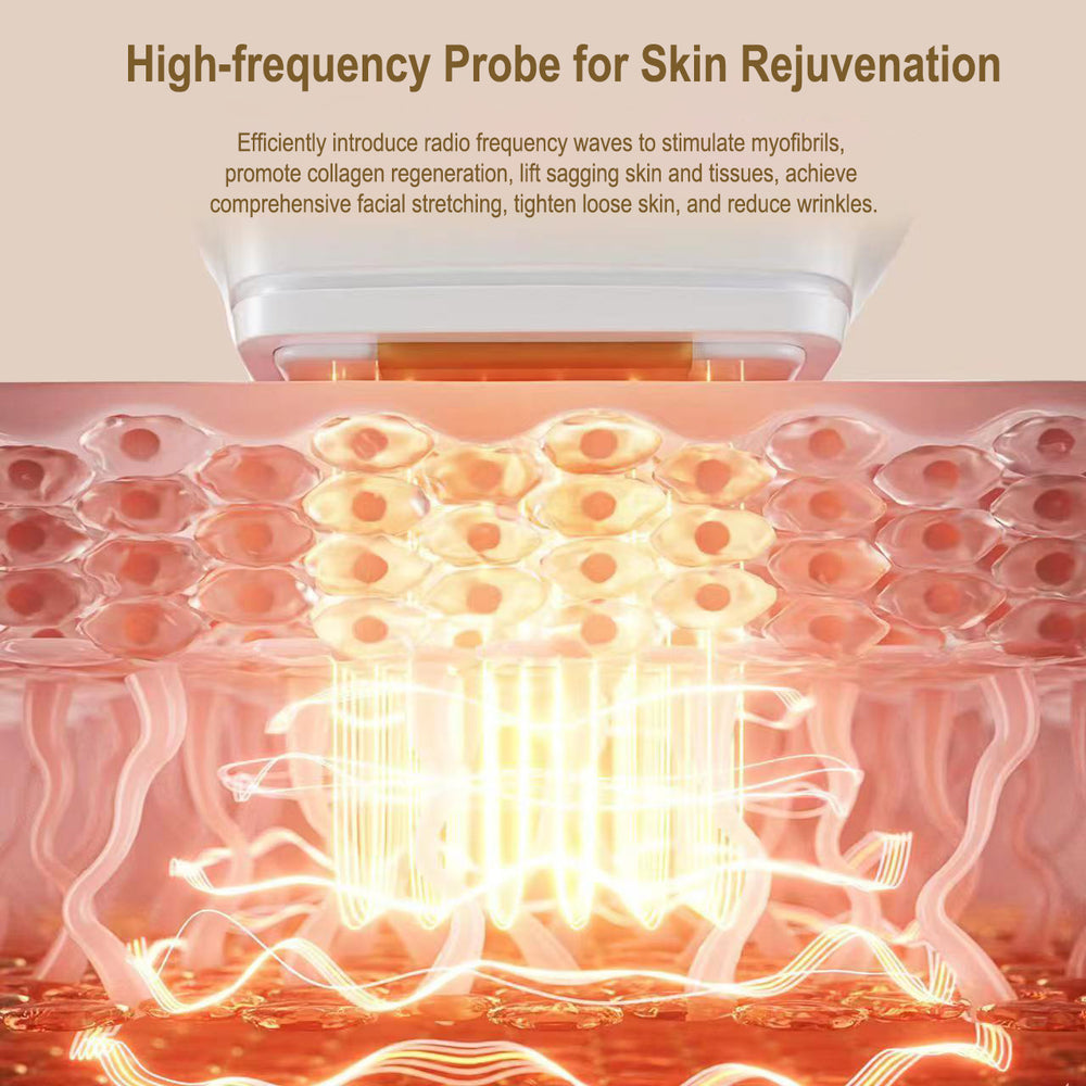 【RF + LED Light Therapy Synergy】Combines skin-tightening RF with 650nm red light therapy. This dual-action approach improves microcirculation, accelerates skin metabolism, and delivers both firming and rejuvenating effects for a radiant, youthful glow.