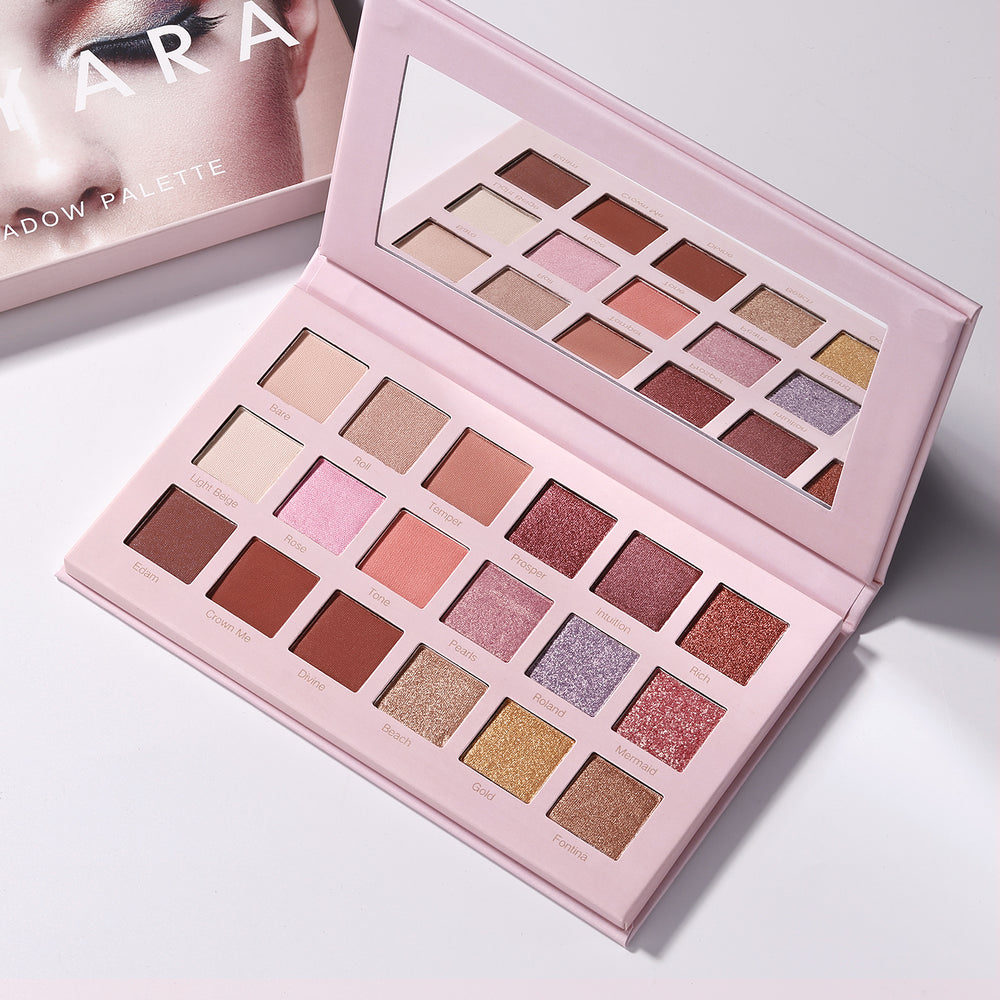 FREYARA Golden Rose 18-shade Eyeshadow Palette features a rosy nude color scheme offering countless color combinations. It provides textures from matte to shimmer to glitter for creating nude, fun, passionate and party basic makeup.