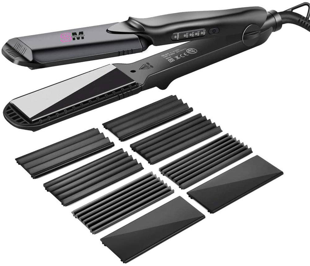 Hair Crimper and Straightener Iron, 160°C-220°C 30s Fast Heating, 4 Interchangeable Ceramic Plates, UK Plug