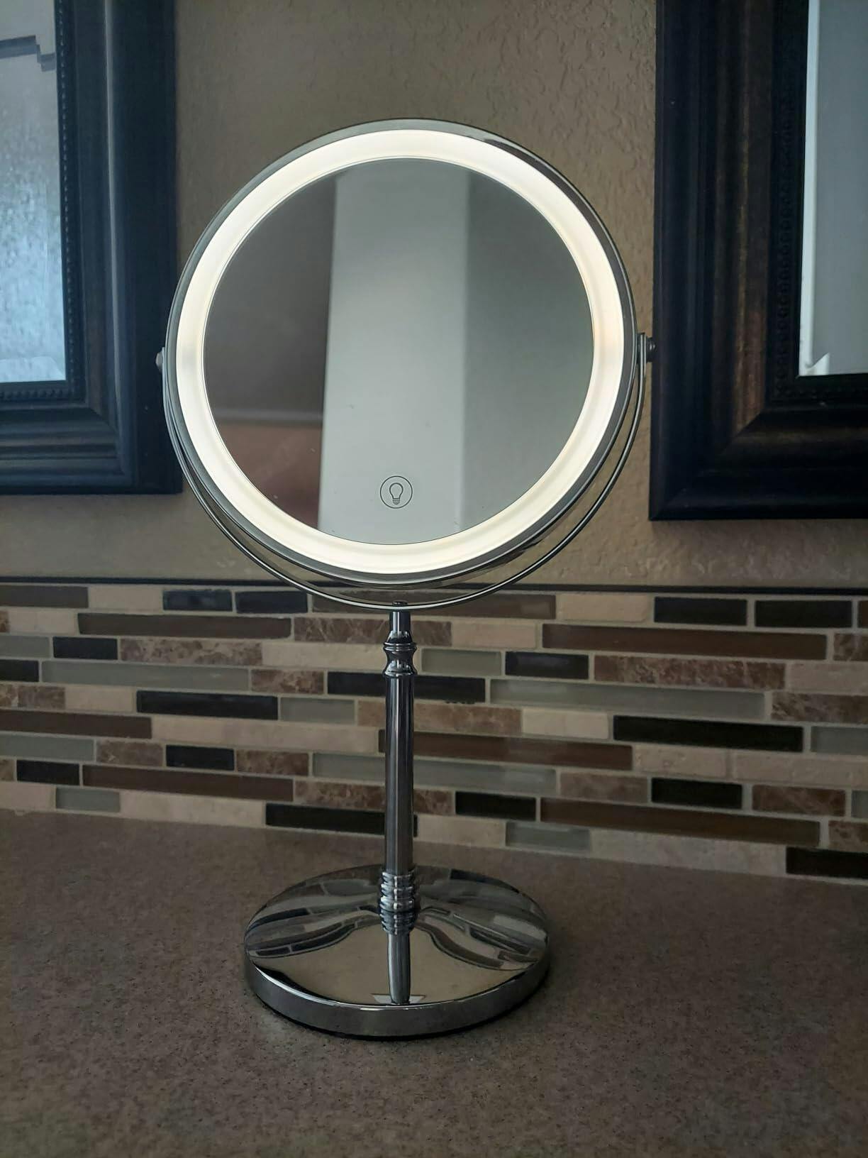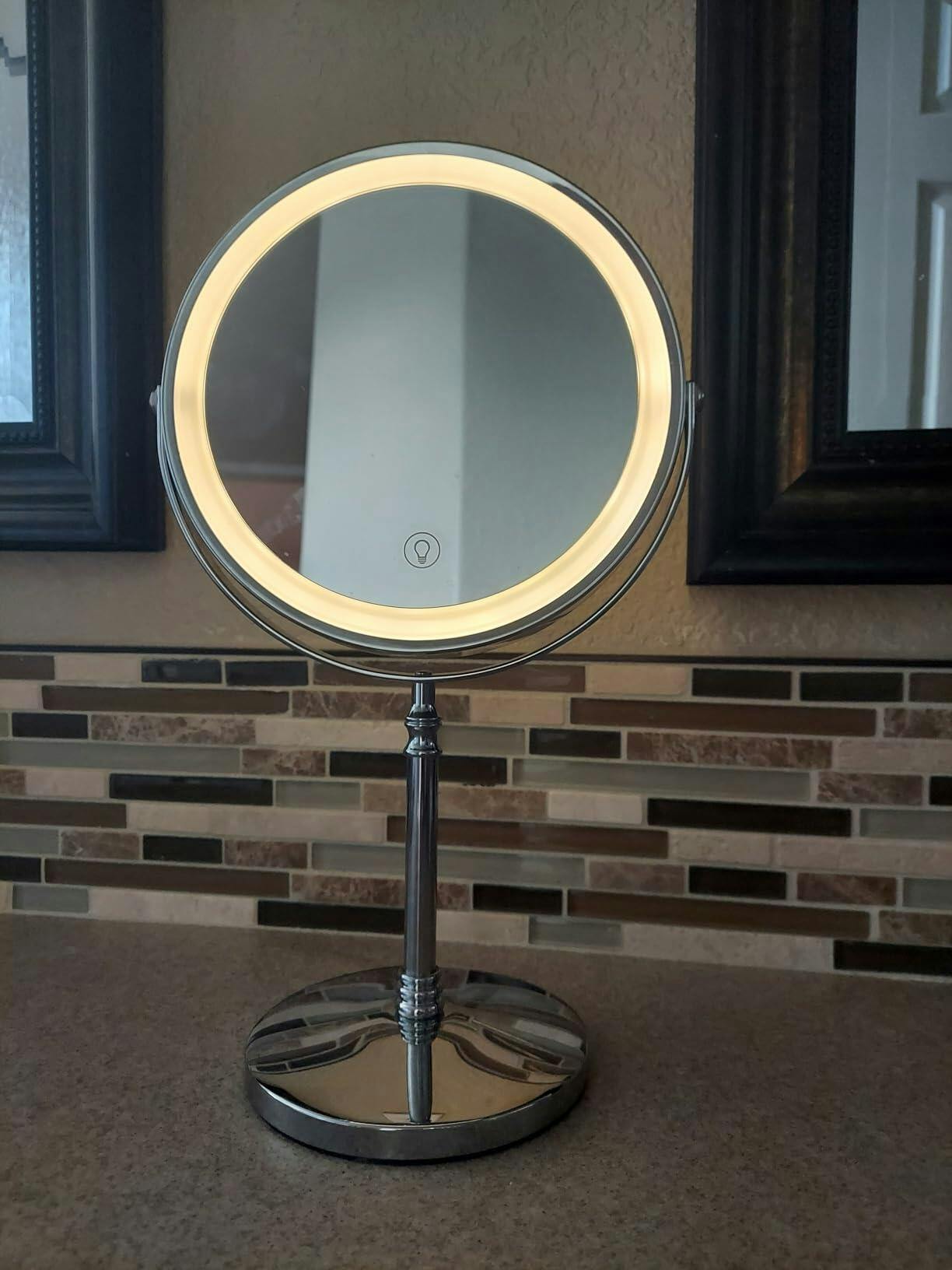 I like the quality of this mirror, it is very sturdy and does not tip over easily. I also like that you can plug it in without wasting money on batteries. It has different lighting settings, which is nice, and the magnification is great. I would definitely recommend it to friends and family and would buy it again for myself.