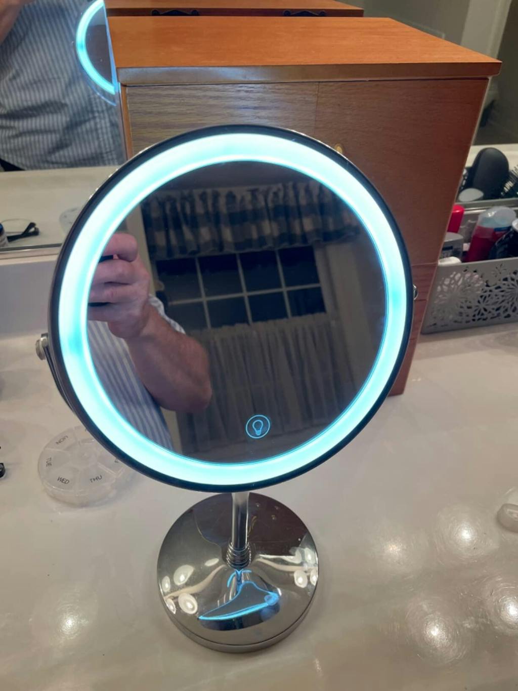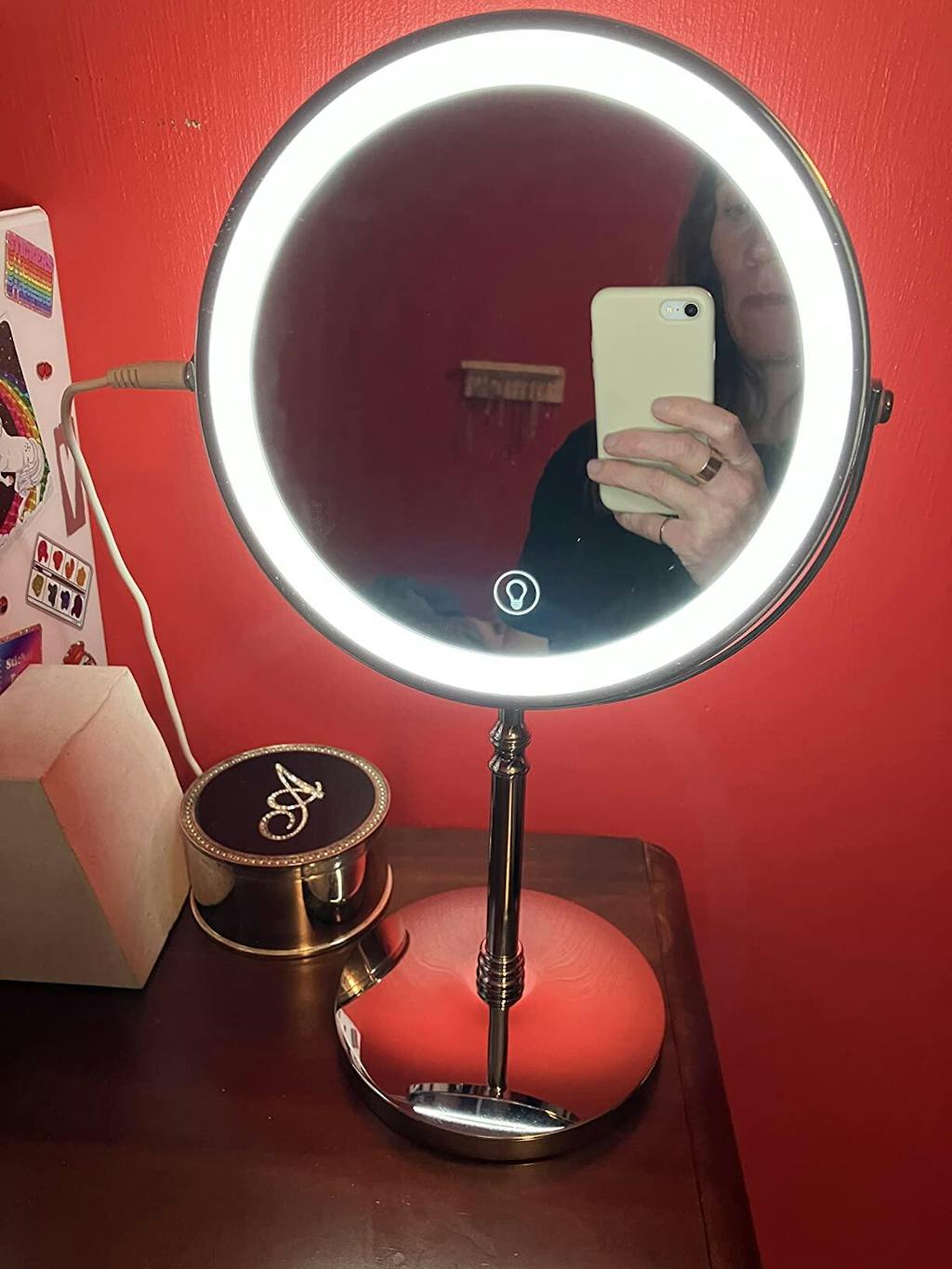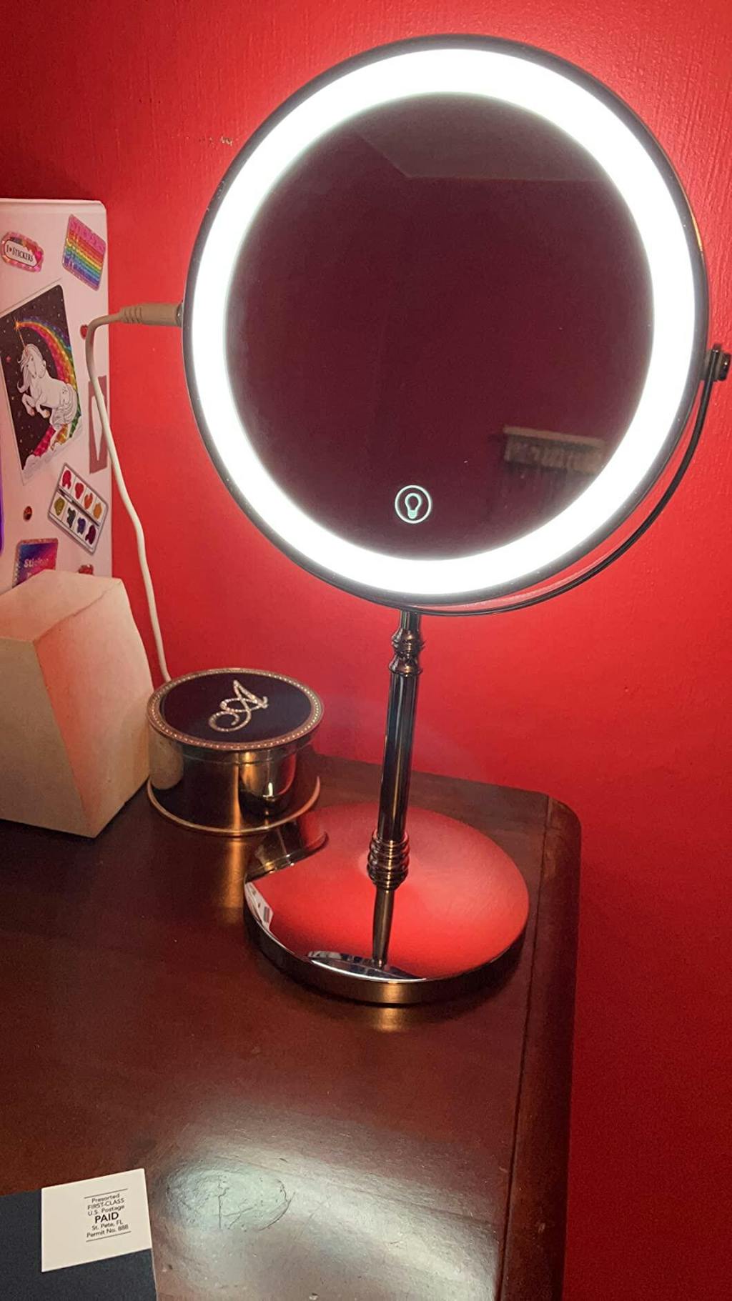 I received the lighted makeup mirror from my husband. It was the best gift I have ever gotten. I love this mirror.