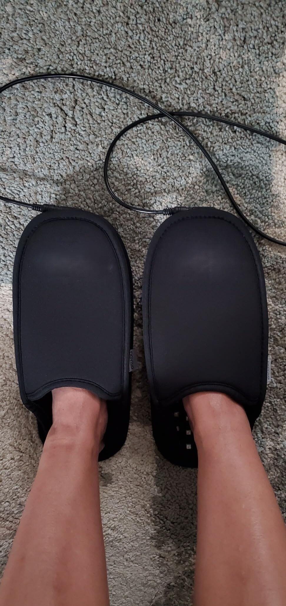 Since I started using them, my pain has significantly decreased and my foot circulation has improved. I wear them in the evenings while watching TV and the warmth is very relaxing. Even my husband (a runner) has started wearing them recently and noticed clear relief from his foot pain! They are lightweight and fold compactly. They come with both a USB and a regular plug, making them easy to take along and use anywhere.
