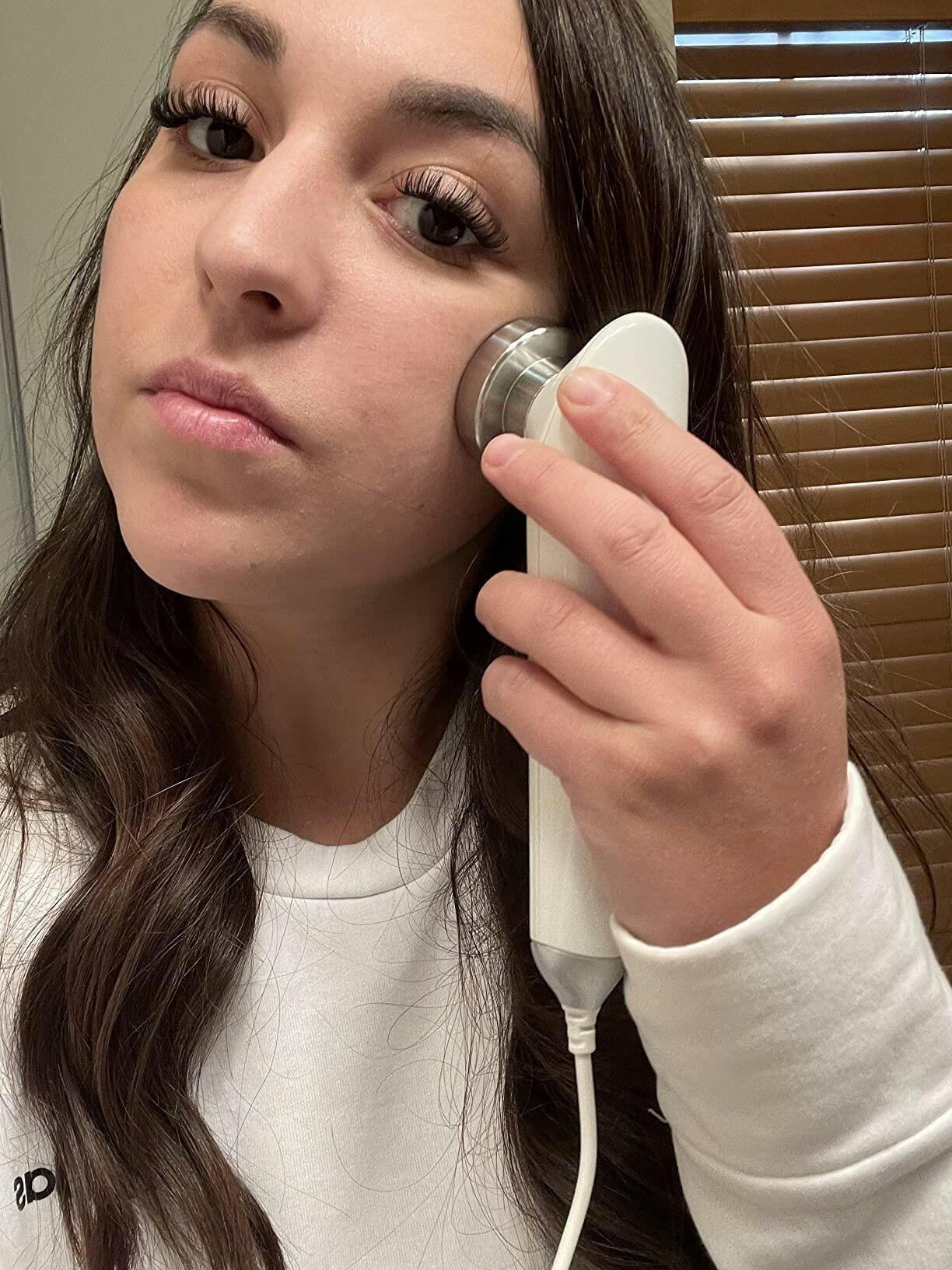 The device comes with two heads, but I mostly used the larger one for better coverage. I focused on my neck since I'm losing weight and the skin there was sagging. After about 2 weeks, my jawline looks sharper and the neck skin is firmer. It could feel a bit warmer, but overall it's effective.