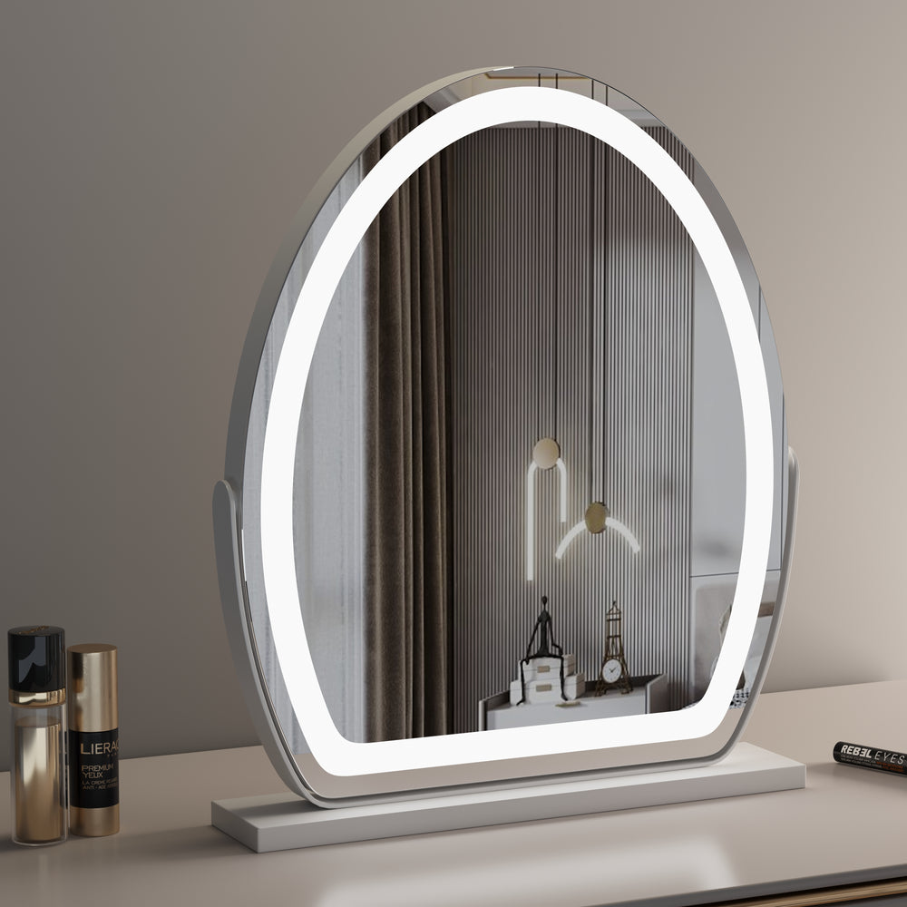 desktop oval LED light mirror, newly upgraded aluminum alloy frame, stable and safe, durable, will not rust, and can be wiped as after long-term use