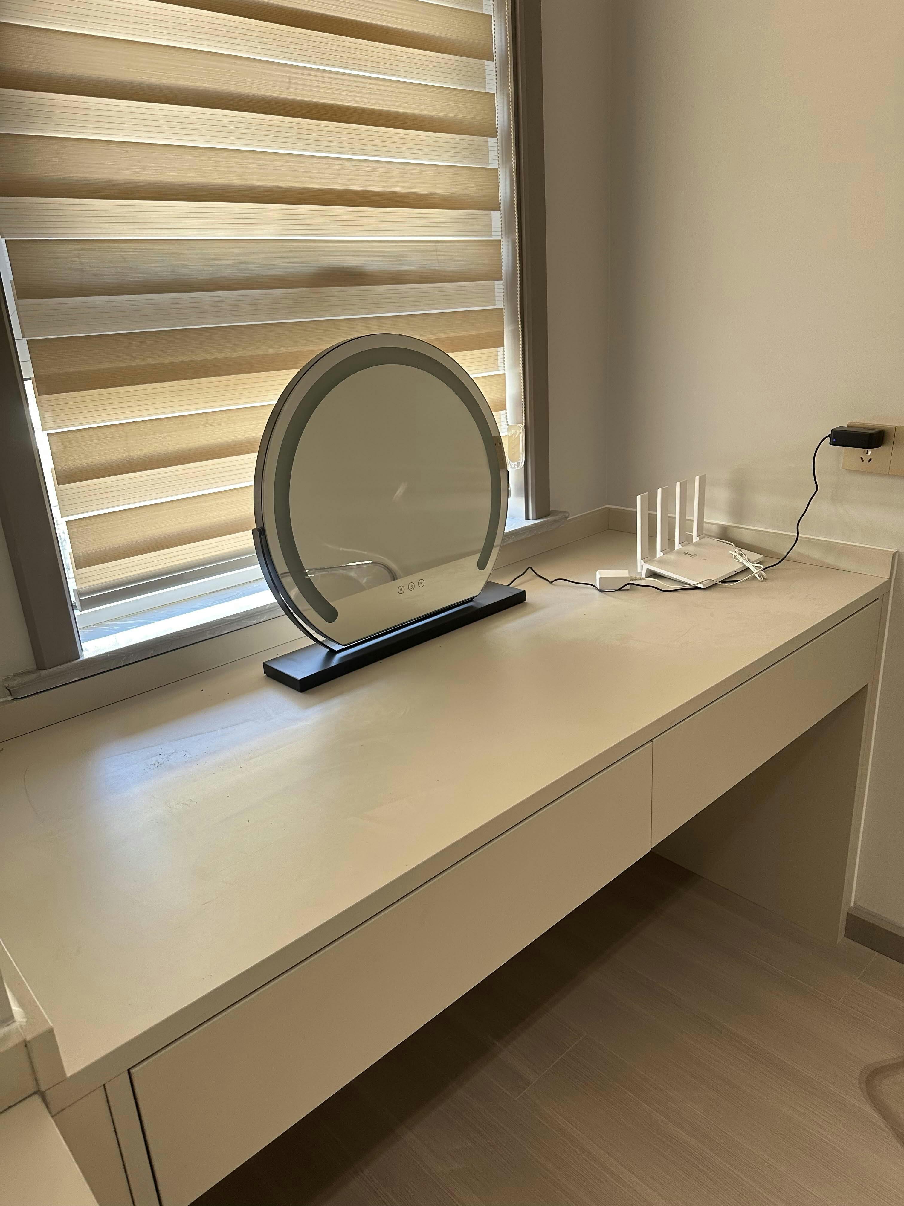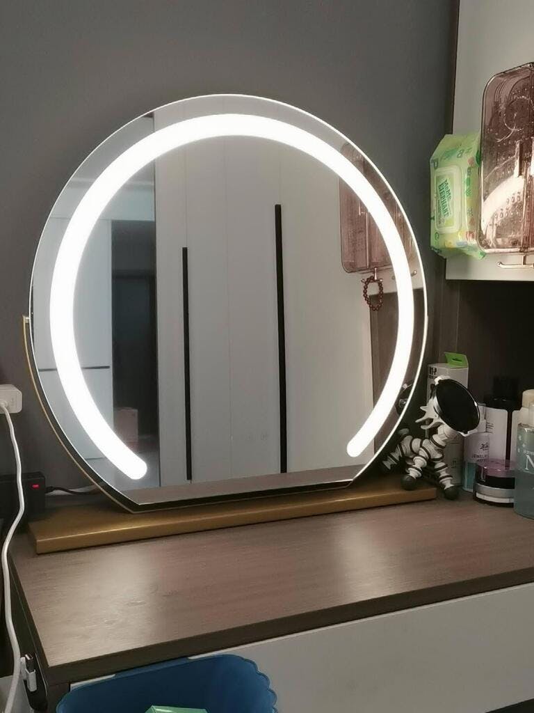 This is a perfect makeup mirror for me! It fits nicely on my dressing table and also looks cute when not in use. The different light options and dimmable settings are perfect for when I need to adjust. I have no complaints about this, it's great!