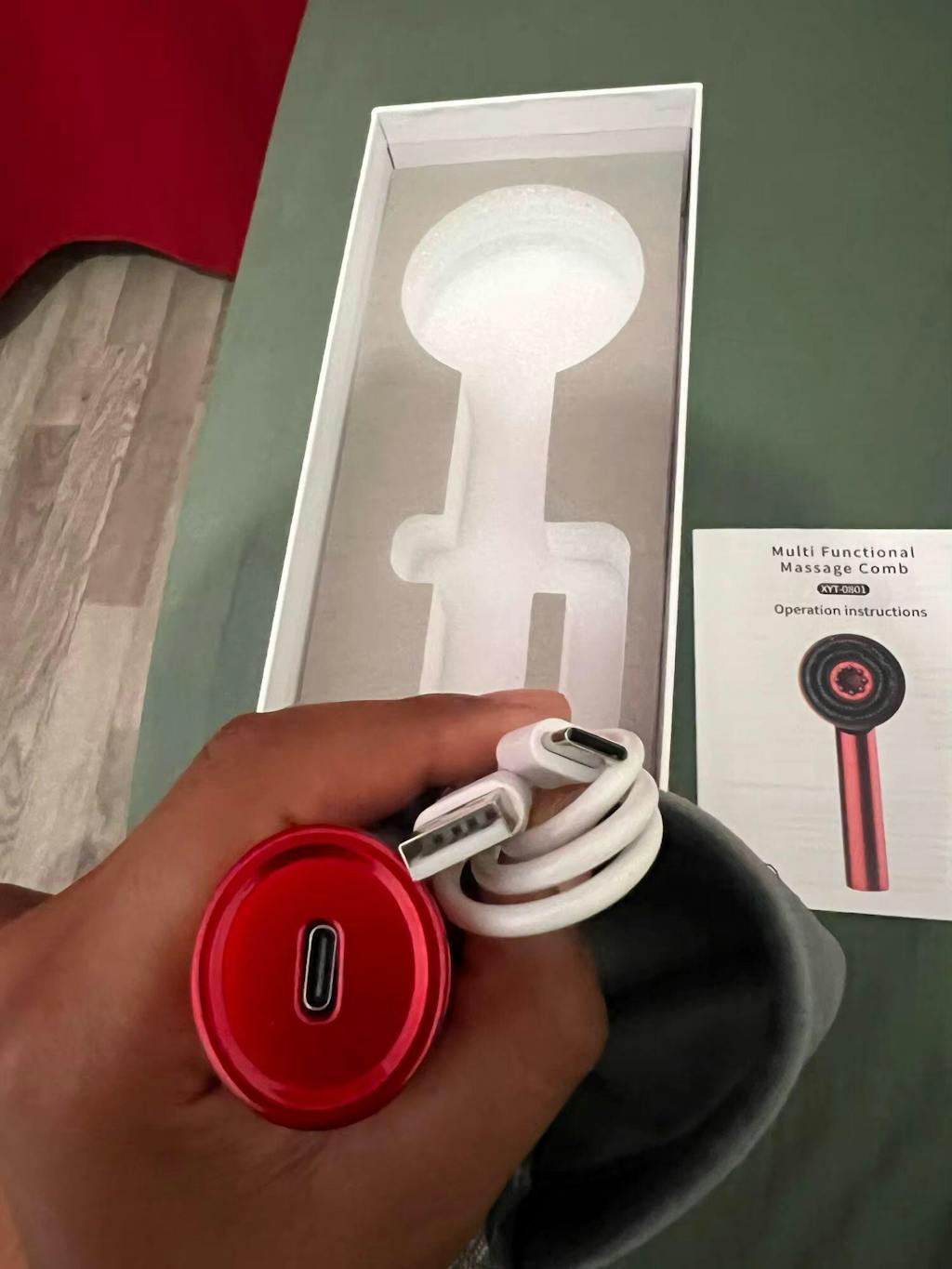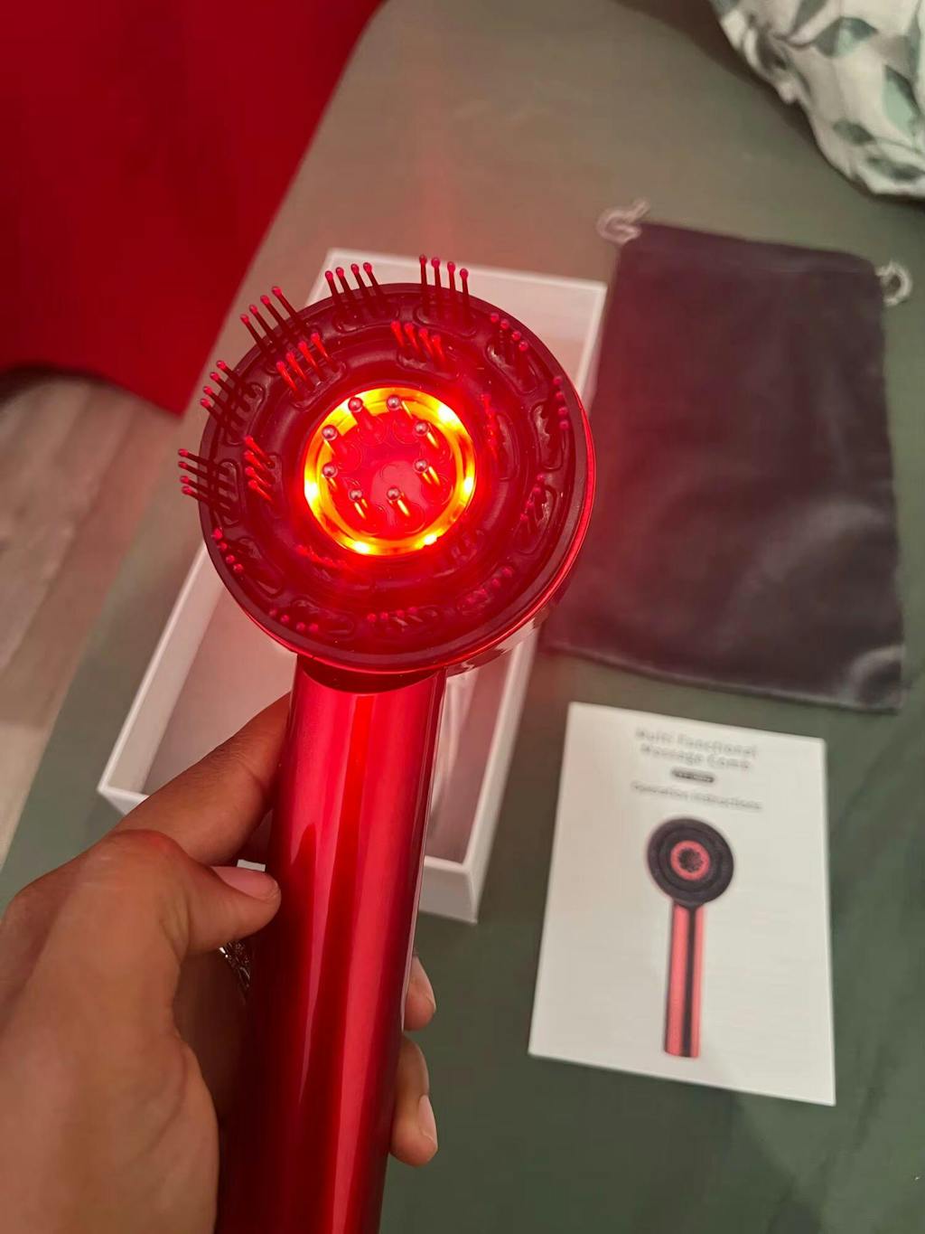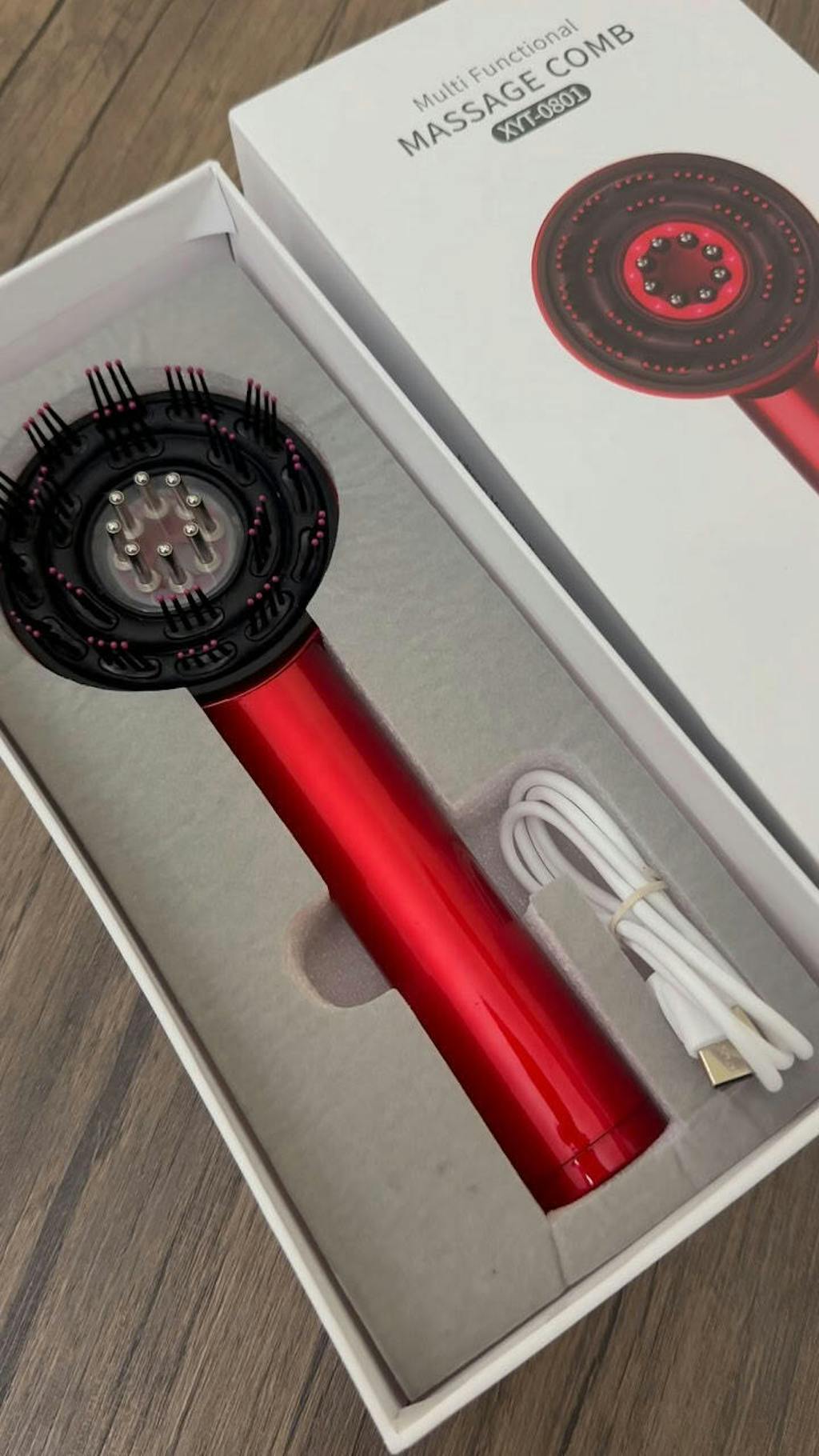 I‘ve been using this massaging comb for two weeks now, and I already feel a difference. The red and blue lights add a soothing effect, while the massage function stimulates my scalp.